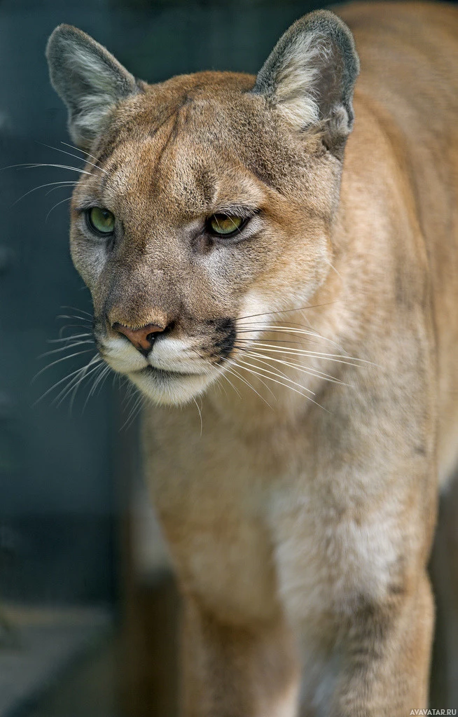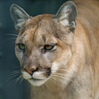 mammal native to the Americas. The puma appears alert and focused, with its ears perked up and eyes open wide, possibly in response to something that has caught its attention.