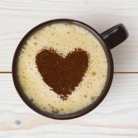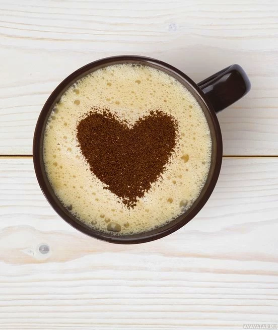 a cup of coffee with the heart shape formed by cinnamon or a similar brown substance at the bottom. This type of presentation is often used to express love, care, or affection in food and drink presentations. It's