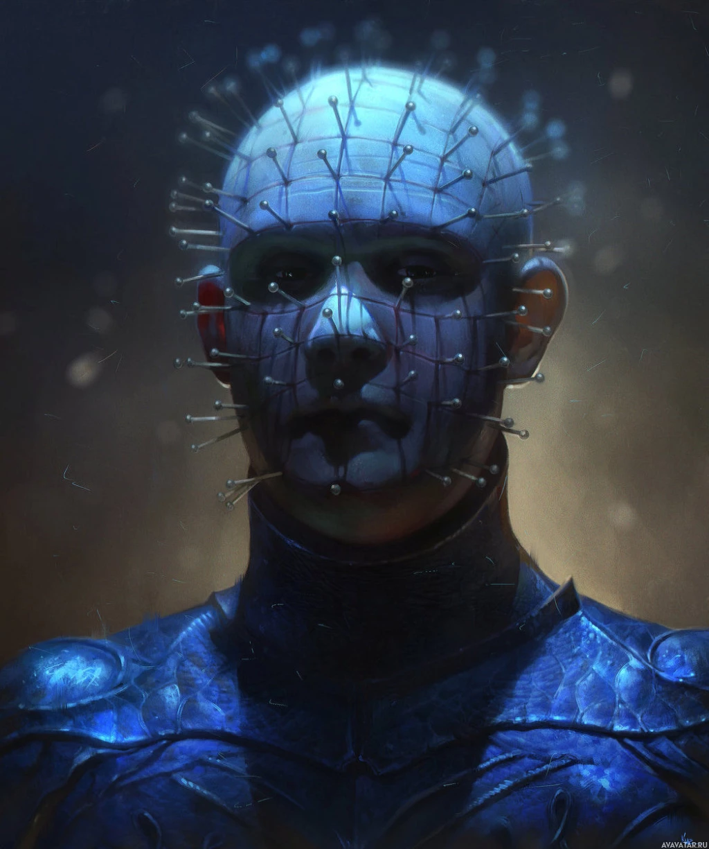 The image shows a character with numerous nails or spikes protruding from their head, which is a characteristic feature of the movie "The Devil's Backbone" by Guillermo del Toro. The character is depicted in a serious and eerie manner, fitting for