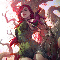 Poison Ivy, a fictional comic book villainess known for her role as an antagonist to Batman. This character is often associated with the DC Comics universe and is typically portrayed with long