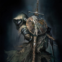 The image shows a fantasy-style illustration of a character from behind. The character is wearing a hood and holding what appears to be a sword. The setting seems dark and moody, possibly suggesting a scene from a game or a narrative storyline involving medieval or fantasy elements.