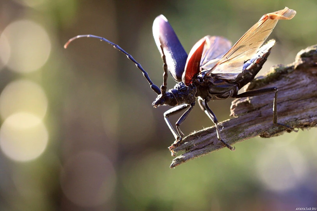 На картинке изображен жук. Он сидит на чем-то похожем на ветку дерева, вероятно, в естественной обстановке на открытом воздухе. Жук имеет ярко выраженную окраску с красными и черными отметинами на теле.