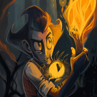 a video game like "Don't Starve." The art style and character design are reminiscent of hand-drawn illustrations often found in indie games or