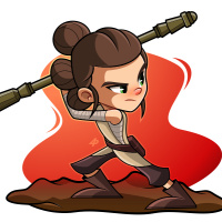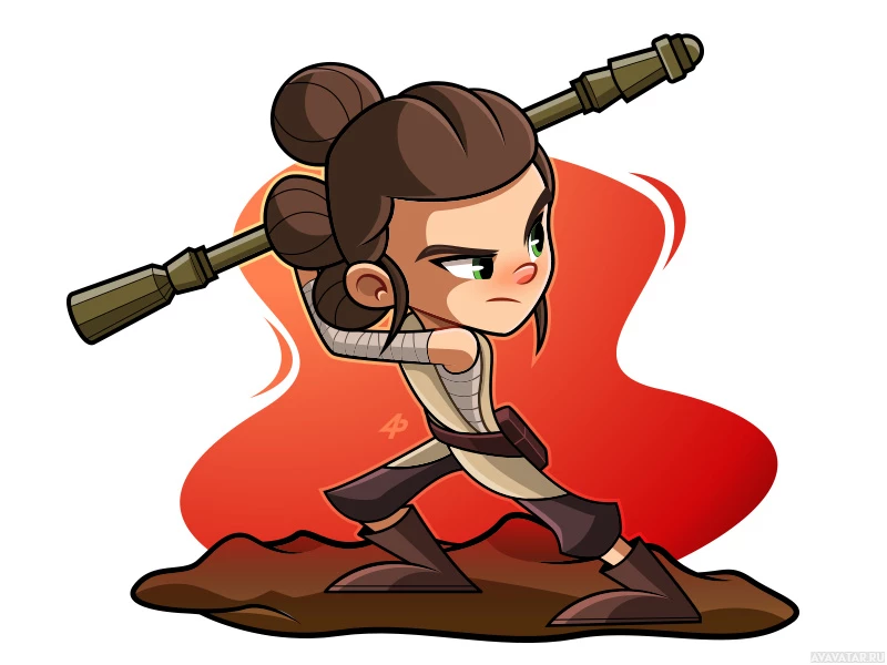 The image features a cartoon representation of Rey, a character from