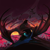 a fantasy scene featuring a dragon. The dragon appears to be