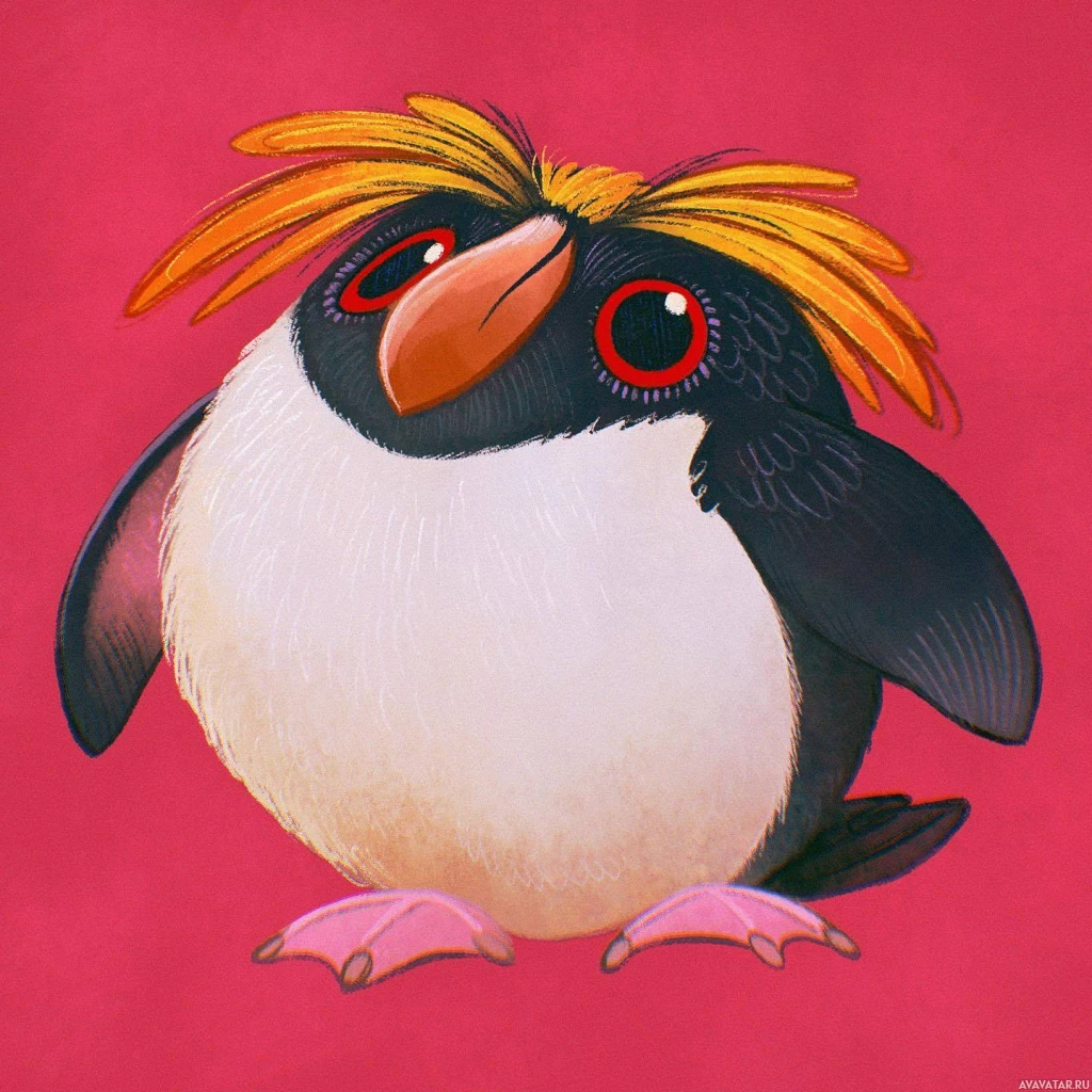 shades of white and black, resembling those of a real penguin. The character is depicted with expressive