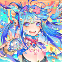 vibrant colors and is rich in detail, with various elements that suggest a fantastical setting. There is also an element of crystal-like structures around the character, adding to