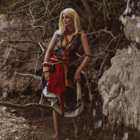 In the image, there is a person who appears to be cosplaying as Keira Metz from "The Witcher 3: Wild Hunt"