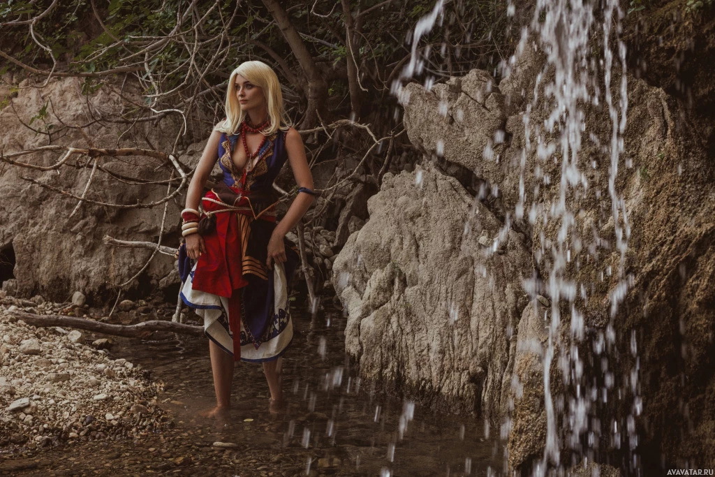 video game. The individual is wearing attire that resembles the character's outfit, complete with armor pieces and