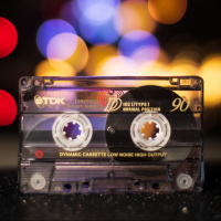 New Year's Eve due to the fireworks-like appearance of the lights. The cassette appears to be in focus while the lights are out of focus, creating