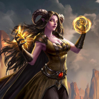 На картинке изображен персонаж с рогами и посохом, который, по-видимому, из фэнтезийной вселенной. Она одета в доспехи и держит в руках что-то похожее на магические шары. Этот персонаж может ассоциироваться с расой дренеев в контексте фэнтезийной вселенной.