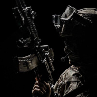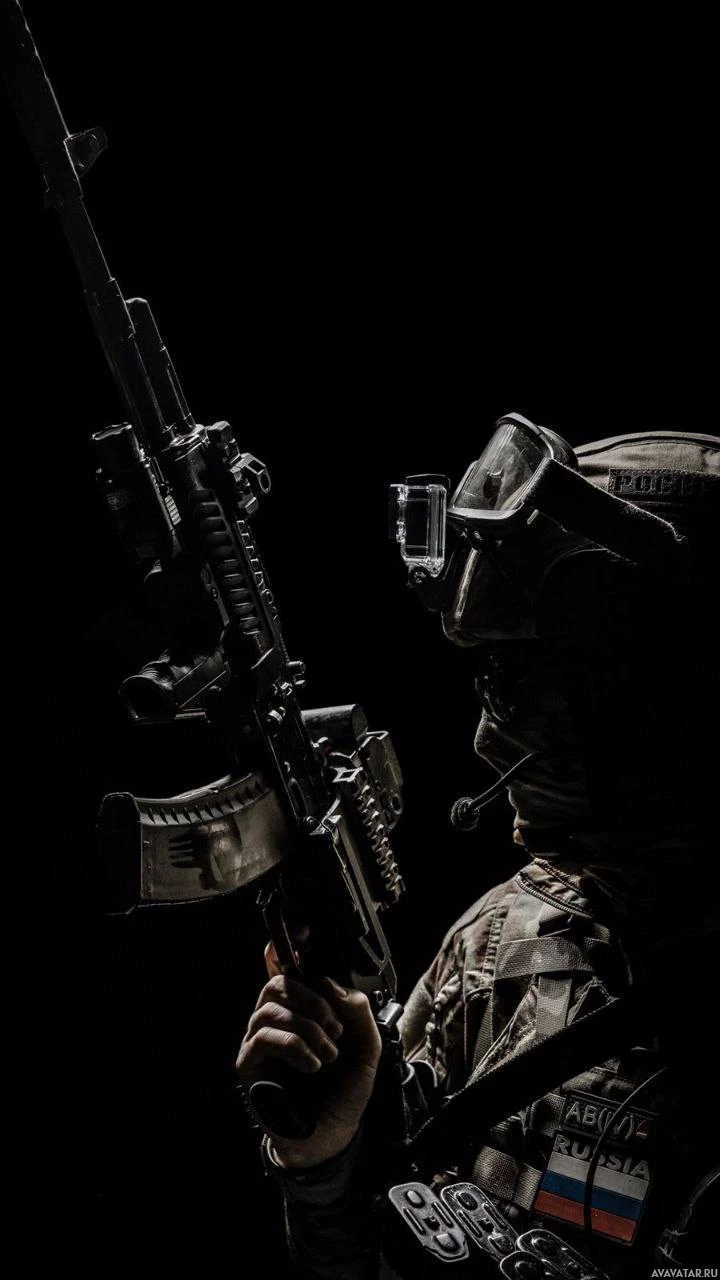 The image shows a person, likely a soldier given their attire and equipment. They are holding what appears to be a weapon, which could be part of