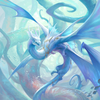 a fantasy creature, which appears to be a dragon. The dragon is depicted with blue scales and is surrounded by what looks like underwater elements such as fish and