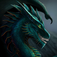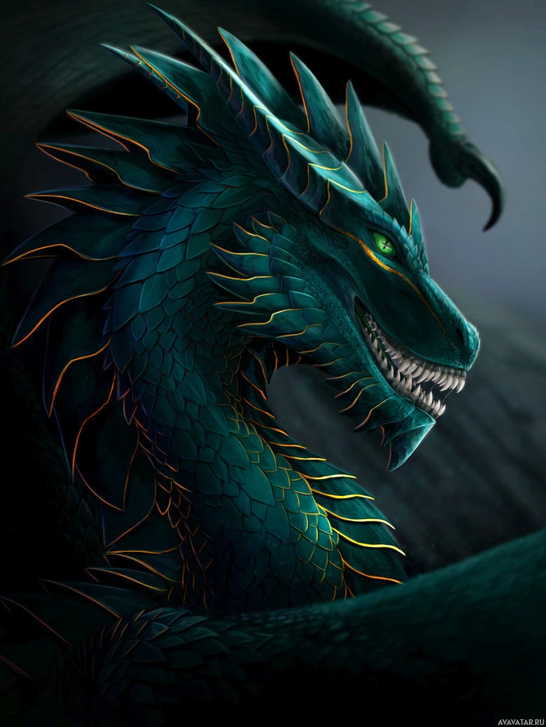 sharp teeth, eyes glowing with an inner light, and its mouth slightly open as if roaring or speaking. The artwork showcases a high level of detail and fantasy elements typical for this genre.