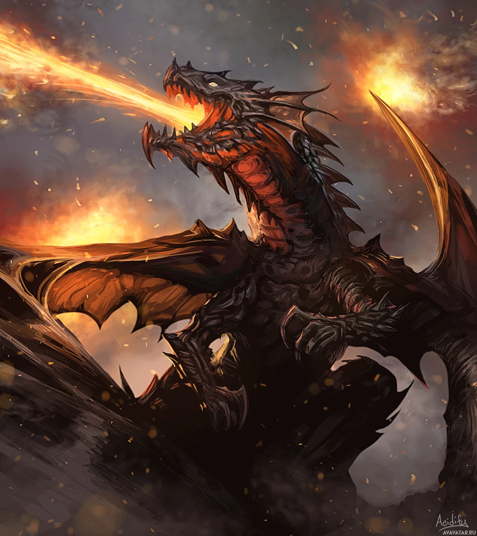 a rocky surface with fire or smoke effects around it, suggesting an intense or fierce atmosphere. This artwork likely falls under the genres of fantasy or dragon illustrations, which are often used for books, games, or other media related to