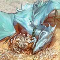 an underwater environment or a shoreline setting. The overall style of the image is illustrative with attention to detail in both the dragon's features and the surrounding elements.