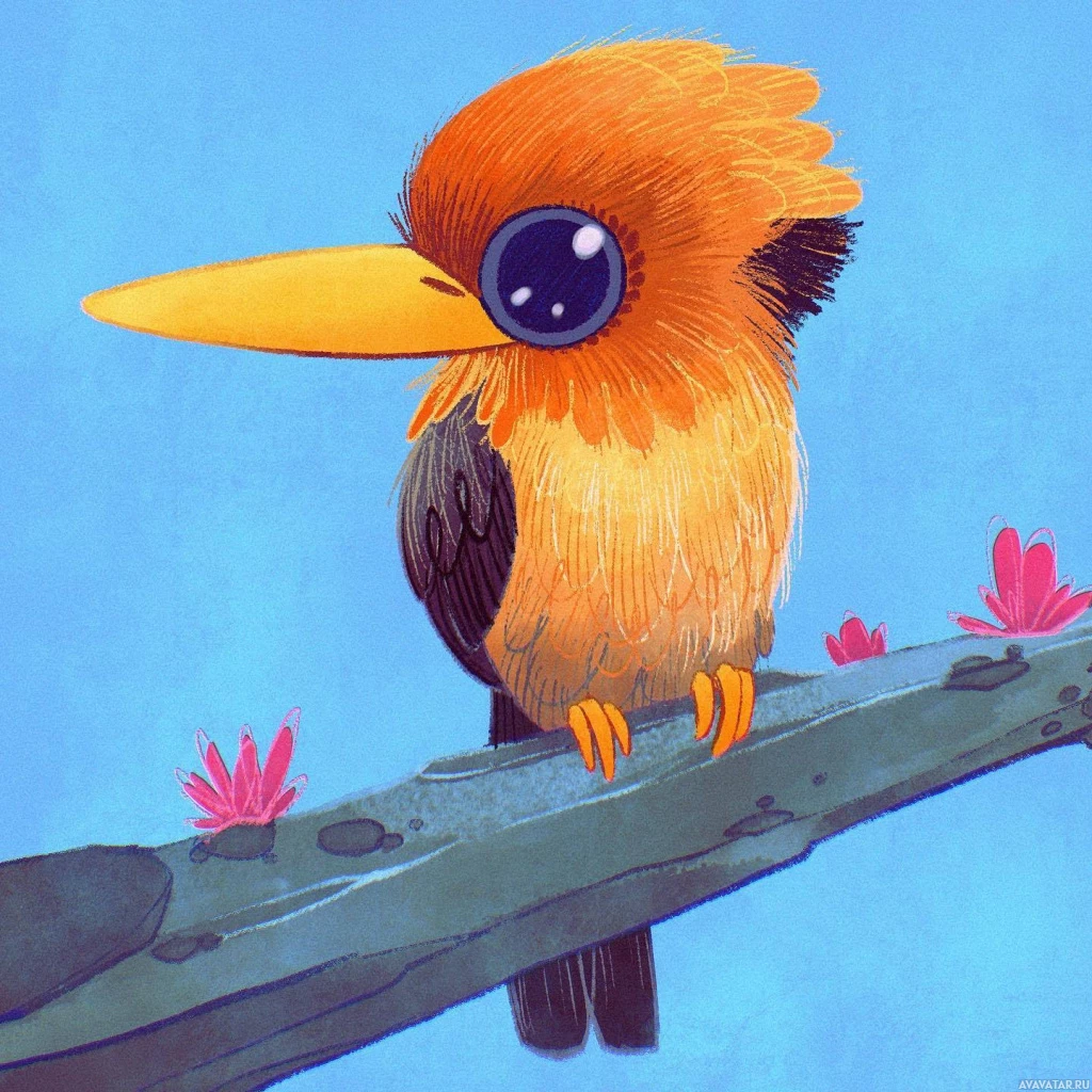 The picture shows an illustration of a bird sitting on a branch. It appears to be a cartoon-style representation with exaggerated features such as