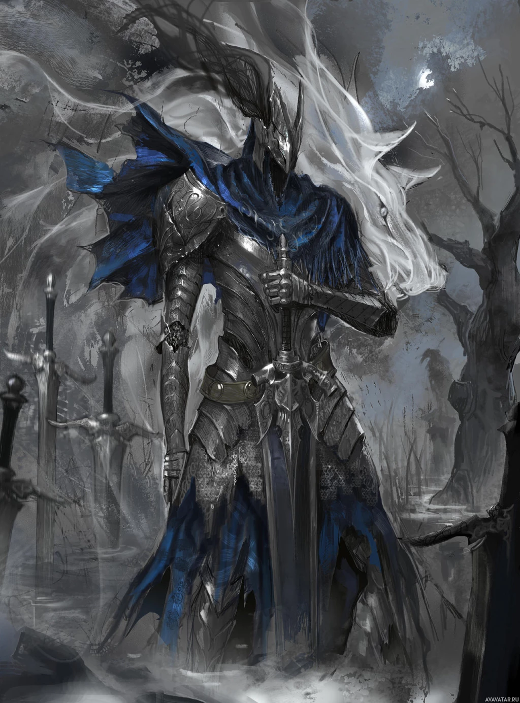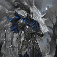 The image depicts a character that appears to be a warrior or knight, armed with a sword and