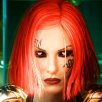 Это изображение, похоже, взято из видеоигры. На нем изображен персонаж с рыжими волосами и татуировками на лице и руках, одетый во что-то похожее на роботизированную или кибернетическую броню. На заднем плане изображена футуристическая обстановка с цифровыми интерфейсами.
