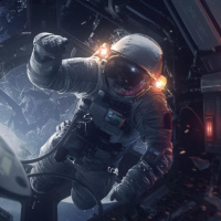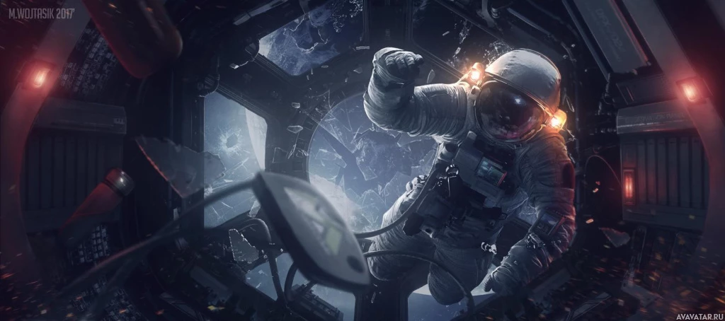 the cockpit of a spacecraft or shuttle. The astronaut is wearing a full spacesuit with a helmet, which suggests they are preparing for a spacewalk or an EVA (