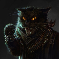 cat character wearing armor and holding a weapon that resembles a shotgun. The cat appears to be in a battle-