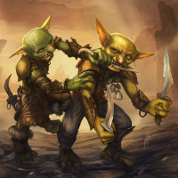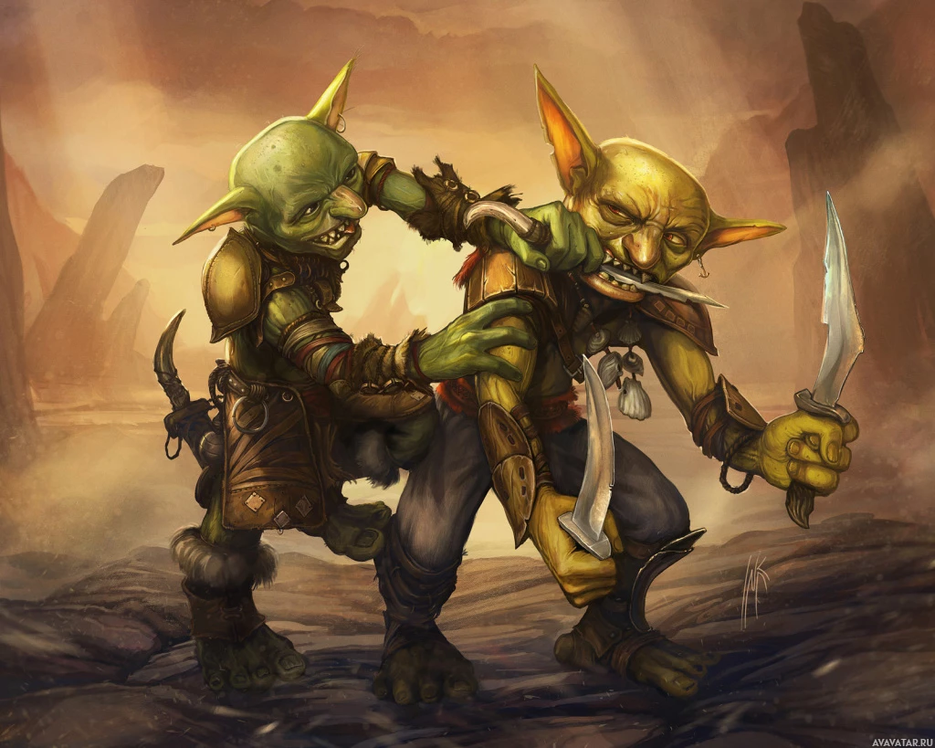 fantasy creatures that resemble goblins. They are standing on a rocky ground with