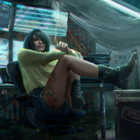 a young woman sitting in what appears to be a technologically advanced room or command center. She has