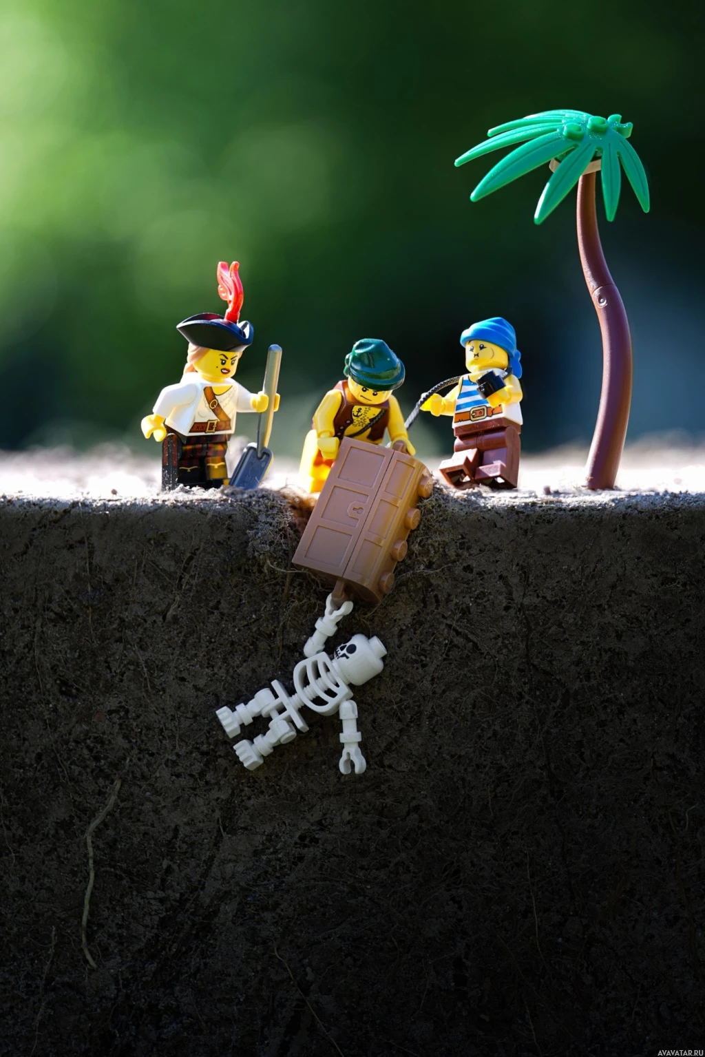 an outdoor setting with greenery, and there's also a small palm tree made of Lego bricks. The overall theme appears to be adventure or