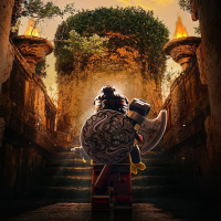 video game series, known for its use of Lego bricks as characters and environments. This character is seen from behind and appears to be holding an axe, suggesting an action or adventure theme consistent with the franchise's narrative. The setting looks like it could be part of a temple or