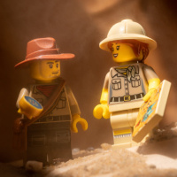 a desert setting. The minifigure on the left is wearing