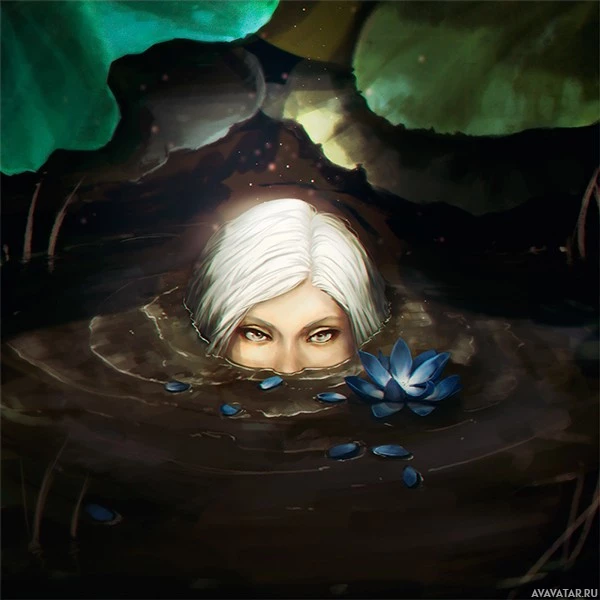 white hair and a blonde appearance. The character appears to be partially submerged in water, possibly in a swamp or