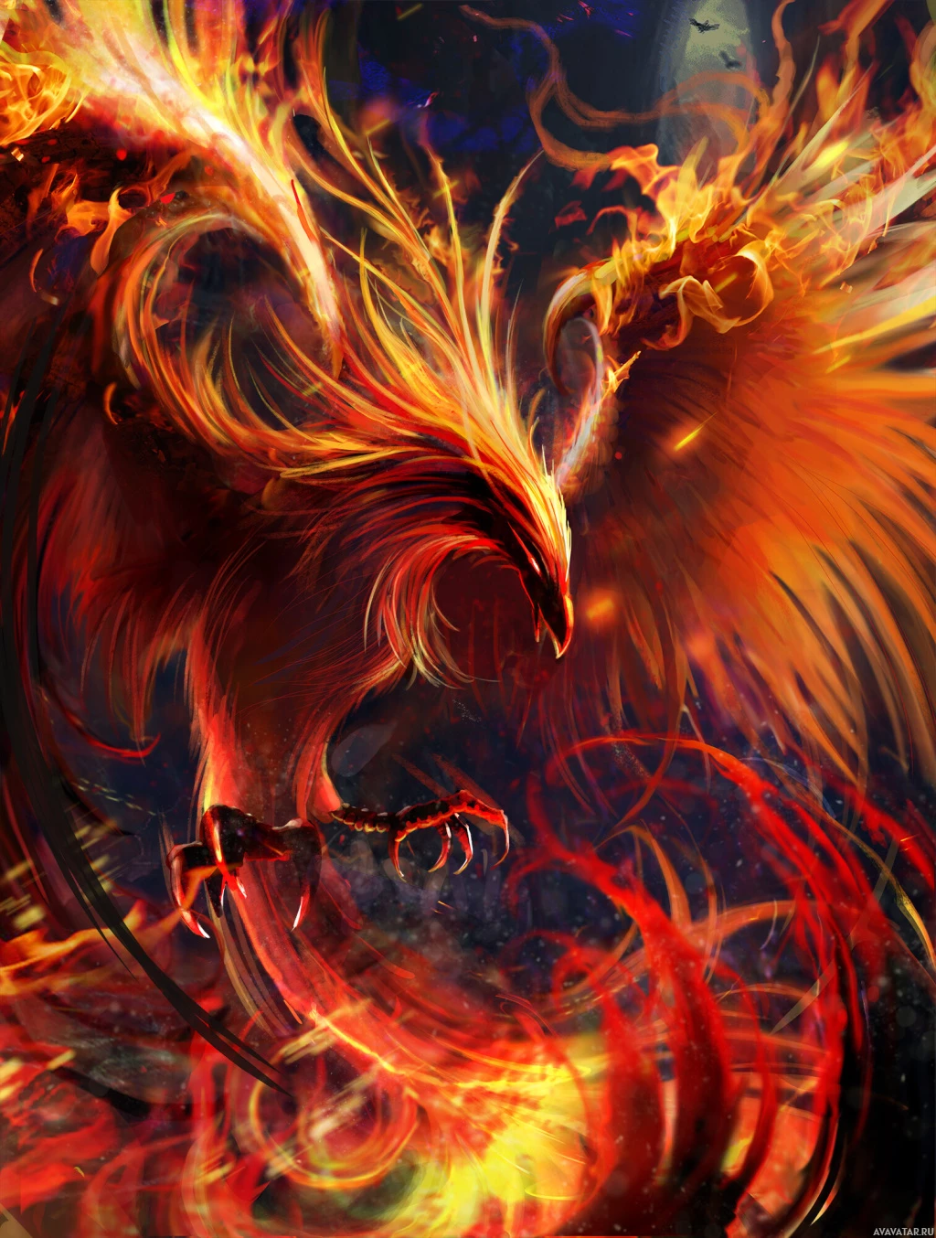 The image depicts a fiery phoenix with