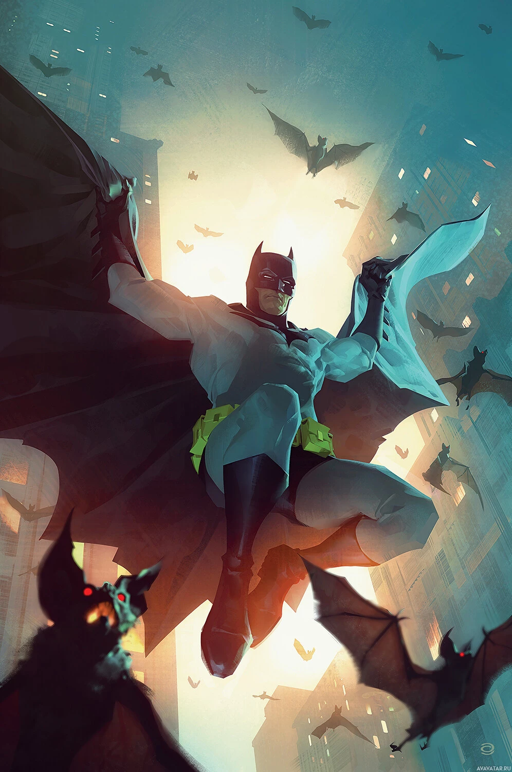 the Batman franchise. This is the iconic superhero known as Batman, who is depicted in his signature attire—a black cape, cowl, and emblem on his chest—and holding