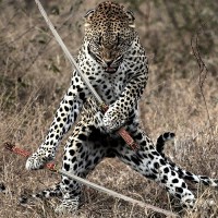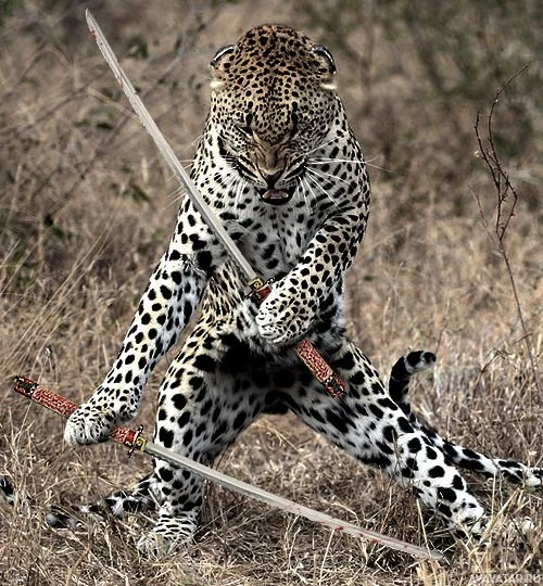 wild animals such as leopards do not engage in human-like activities like sword fighting.