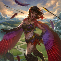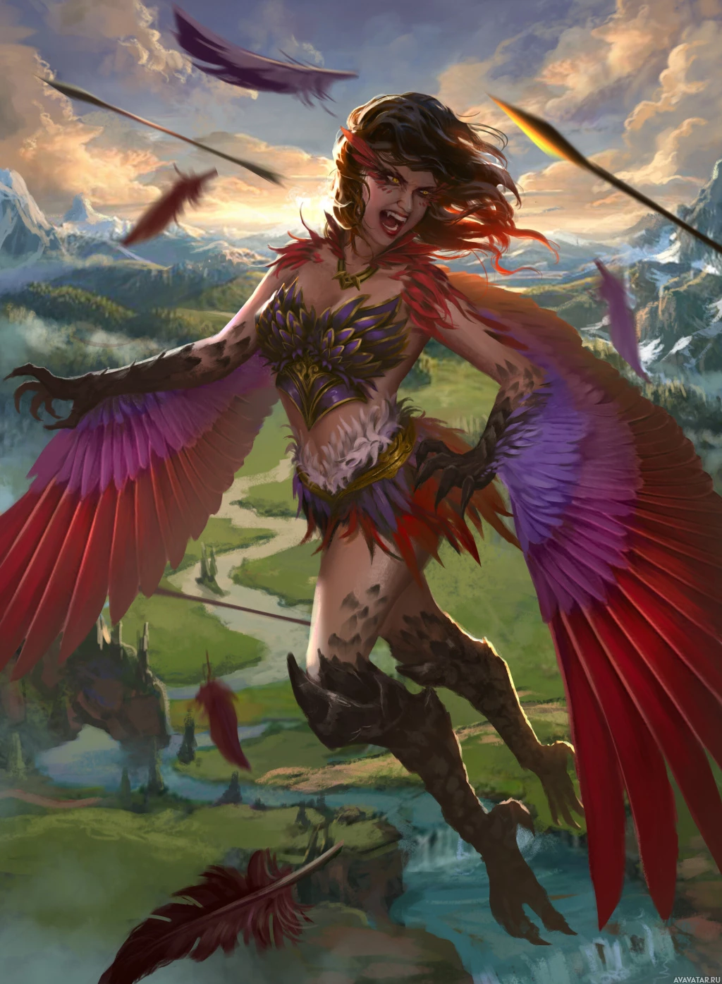 The image shows a fantasy-themed character that resembles a harpy. She has the upper body of a woman with long, flowing