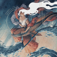 a human hand. The background suggests a nighttime scene with stars in the sky and waves suggesting