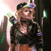 a female character, who appears to be a young woman with blonde hair. She is dressed in a futuristic or cyberpunk-style outfit that includes elements like straps and buckles. She's also wearing what looks to be