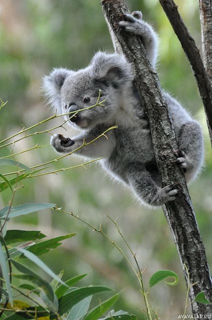a common behavior for koalas, as they primarily consume eucalyptus leaves as part of their diet. The background suggests