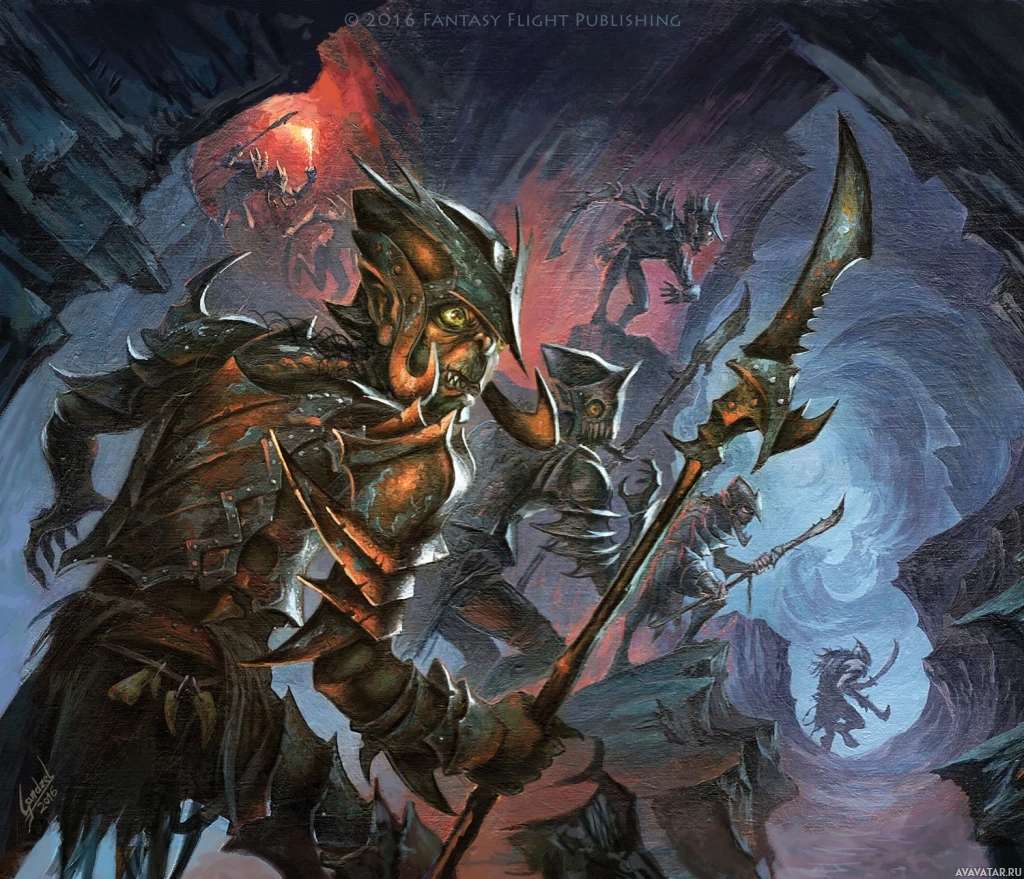 a fantasy setting, likely involving characters or elements of goblin culture. On the left side of the image is a character that resembles a humanoid figure with dark skin and