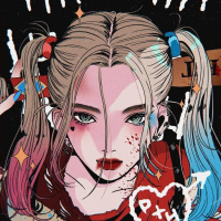 Harley Quinn, a fictional character from the DC Comics universe. She is known for her distinctive style which includes her