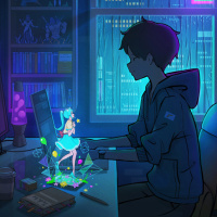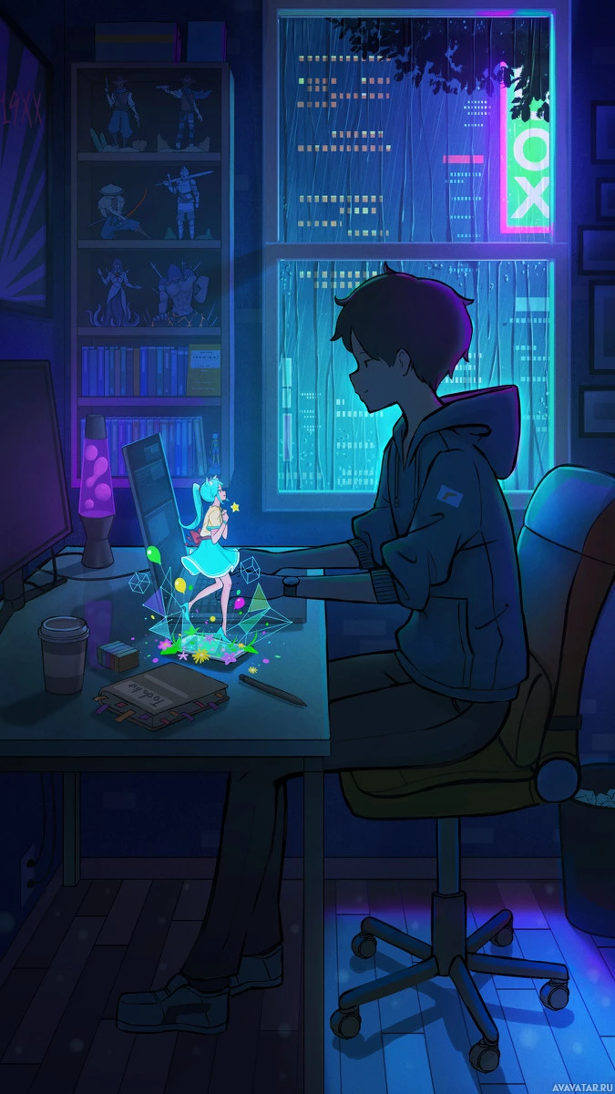 digital art or game design, given the context of anime culture often being associated with such activities. The setting has