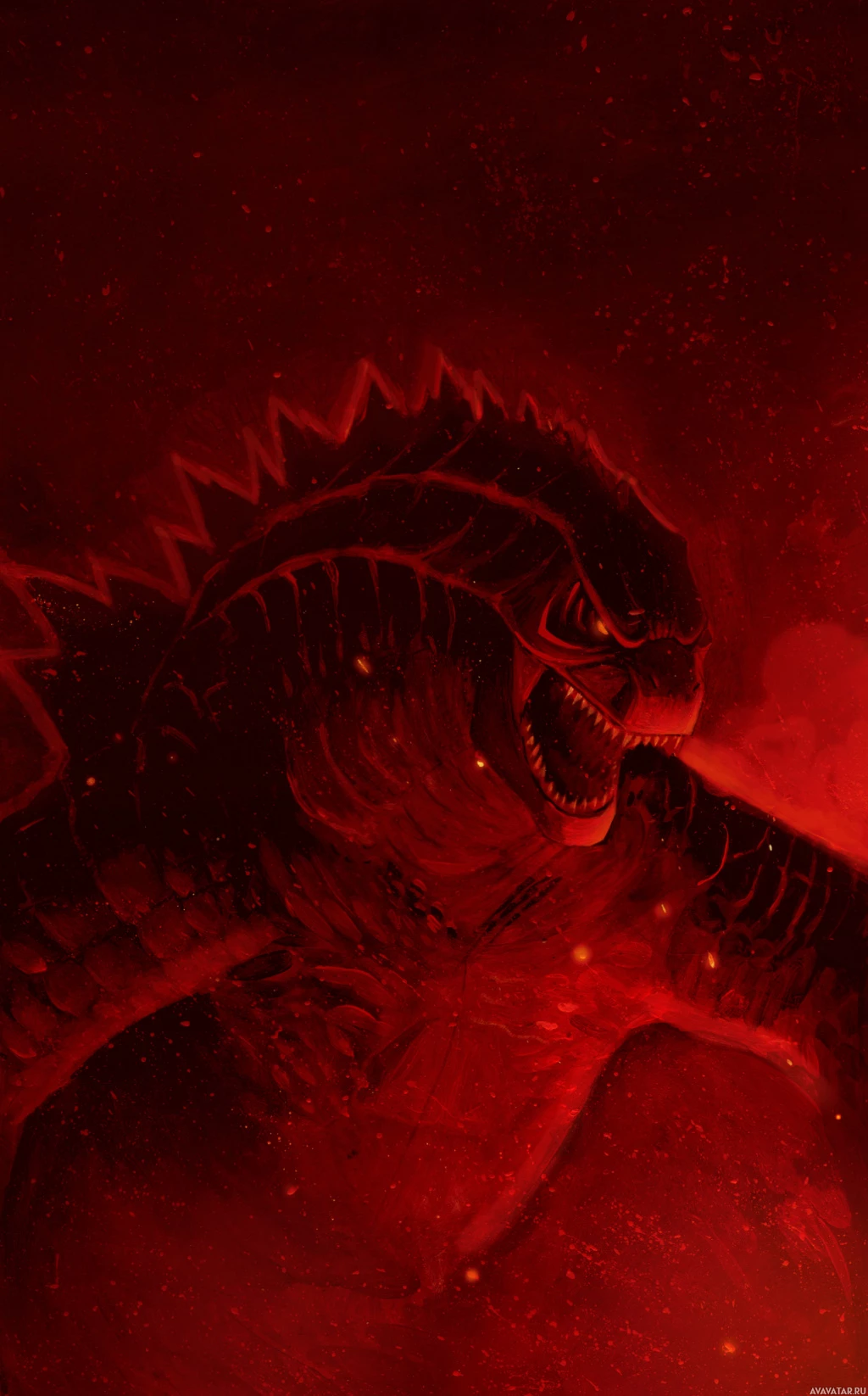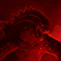 The image shows a digital illustration of Godzilla, a well-known fictional