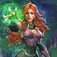 a female character who appears to be from a fantasy or comic book genre. She has