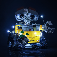 The image shows a robotic figure, which is based on the design of WALL-E from the animated movie "WALL-E." This figure has been created with Lego bricks and components to represent the character. It's a creative representation that blends elements of Lego construction with the iconic design of WALL-E.