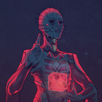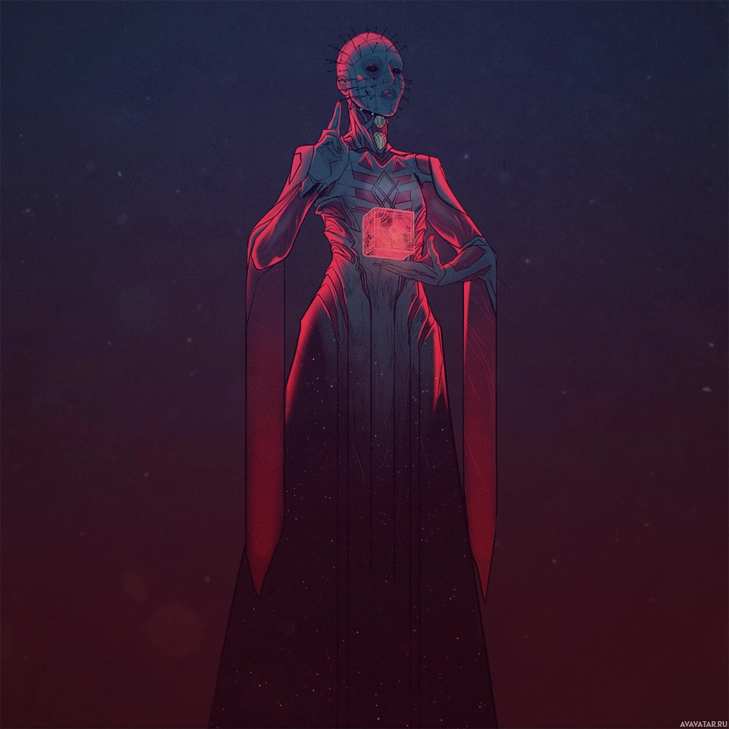 an emblem on the chest. The background suggests a dark, otherworldly setting, possibly implying a scene from a horror movie or