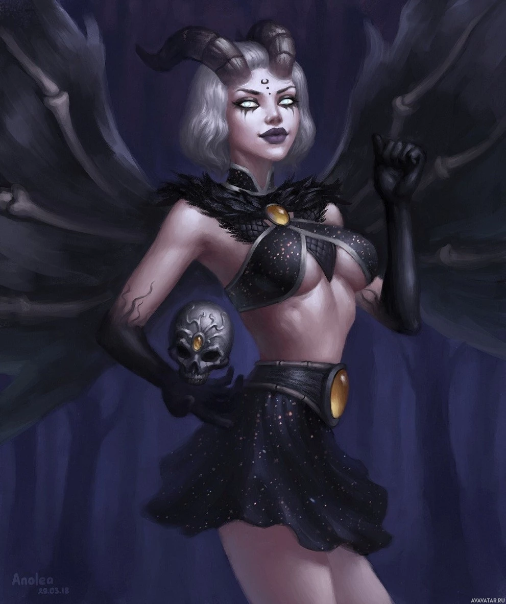 a fantasy character who appears to be a succubus. This creature is often associated with demonic or supernatural themes in literature and folklore, known for seducing humans into various temptations, particularly through their beauty. In this portrayal, the character has