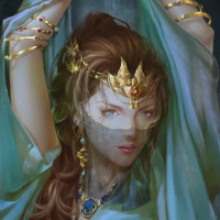 a female character dressed in what appears to be an ancient or fantasy-inspired costume, possibly a princess or sorceress. She has long