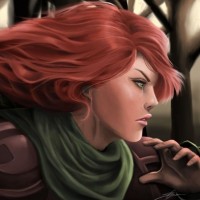 The image features an illustration of a character from the video game Dota 2, known as Windranger. She is depicted with red hair, wearing a green outfit, and has a bow in her hand. The background suggests a forest setting.