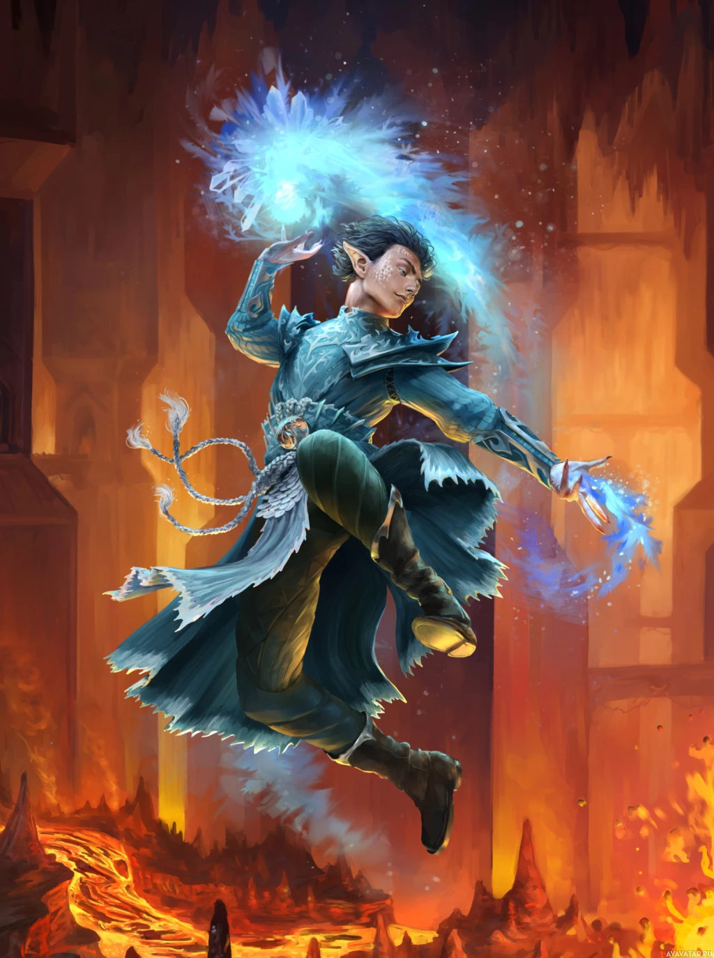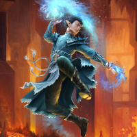 magical energy around them, suggesting they may have some kind of magical ability or are engaged in a fight against magical elements. The background depicts chaos and destruction, possibly indicating that the character is using their magic to combat an enemy or defend a place from destruction. The overall theme of the image aligns with