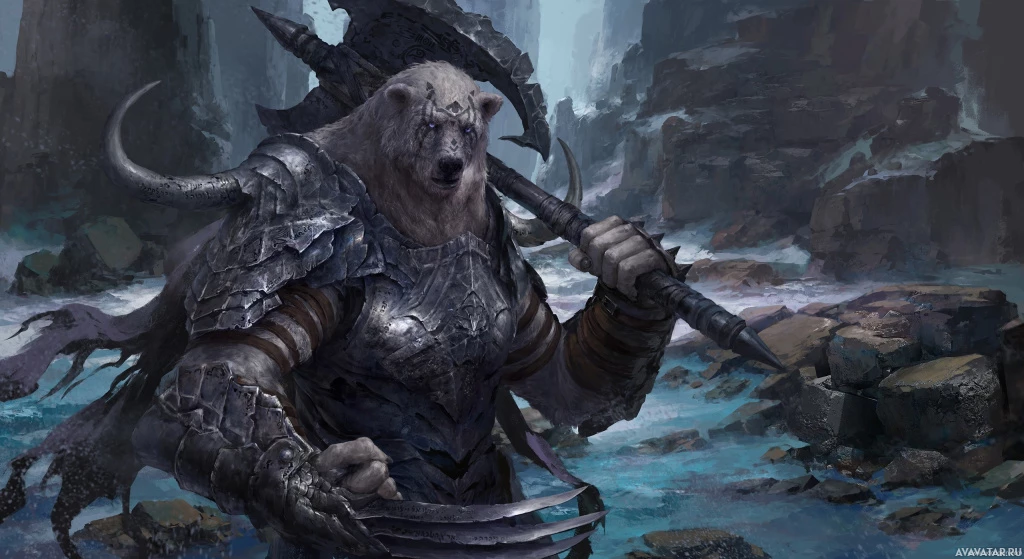 a bear warrior. This character is wearing armor and carrying an axe, which are typically associated with